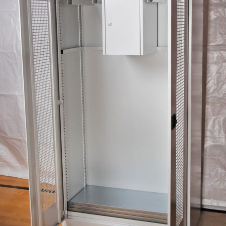 Deshalb verfügt der Geräteschrank im Gegensatz zu dem Ballschrank über ein separates Wertfach und über Halterungen für Sportgeräte. Beide Arten von Schränken sind mit verstellbaren Fachböden ausgestattet. Alle Teile sind aus Feinblech gefertigt. Sicherheitsumkantungen gewährleisten einen maximalen Verletzungsschutz.