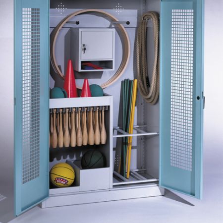 Geräte- oder Ballschränke sind für ein ordentliches Verstauen von Bällen und Kleingeräten unverzichtbar. Zu groß wäre das Verletzungsrisiko, wenn alles bloß "herumliegen" würde. Außerdem ist es sehr praktisch, wenn man Wertsachen im Kästen innerhalb des Geräteraums versperren kann.