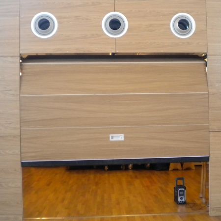 Auch Kipp- und Sektionaltore im Turnsaal müssen die "turnsaalspezifischen" Eigenschaften aufweisen. Kraftabbau. Bündigkeit mit der Innenfläche der Turnhalle. Ballwurfsicherheit. Ballreflexion.